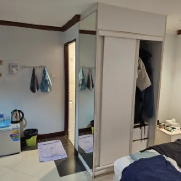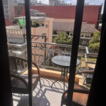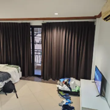 Заселение строго с 14:00. Если по раньше приходите можете оставить вещи и прогуляться по району. У нас был номер с балконом👍🏻 Всем советую брать с балконом так как вид норм, если без балкона берете то вид будет напротив стены соседнего отеля. Мебель устаревшая но для бюджетного отдыха самое то 👍🏻 Все в шаговой доступности, близко до моря 8 минут, до банглароуд 10 минут. 7 leven напротив что очень удобно. Уборку комнат проводятся если табличку повесишь, при уборке меняют постельное белье и полотенца. Персонал отзывчивый и приветливый.
