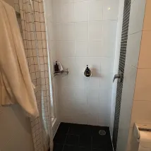 - душ брызжет во все стороны, отрегулировать невозможно, на потолке плесень, вытяжку вообще видимо никогда не чистили.