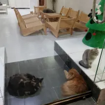 - распиаренное кафе с кошками, там не только есть, туда даже зайти в помещение невозможно, вонь до 3-го этажа.э😖