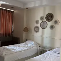 В отеле есть комната с милыми котами, от этого присутствует запах кошек в отеле. Можно посидеть на крыше, полюбоваться видами с 5 этажа, на море, номер уютный и чистый. Внимательный и доброжелательный мужчина сотрудник на ресепшн