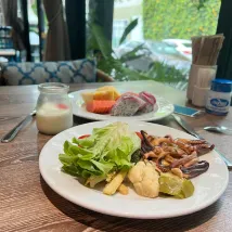 Завтраки, которые нахваливали в отзывах, совершенно не вкусные. Еда выглядит не плохо, но не вкусно. Даже круассан не съедобный. Единственное, на удивление неплохой америакано, фрукты и брауни. Отель уже очень уставший. А цена очень завышена!
