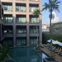 Отличный отель, прикольная концепция, великолепные завтраки! Есть небольшой тренажерный зал и зал для единоборств. Территории нет совсем, только бассейн и шезлонги, вокруг строятся отели, но строителей не видно.