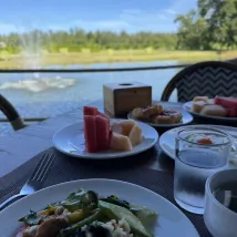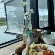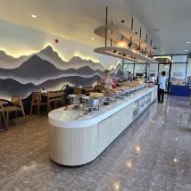 Завтрак: выбор блюд небольшой, но голодным не останешься: 2 вида фруктов (меняются), овощи, несколько горячие блюд, сосиски, ветчина, 1 вид супа, фруктовый салат и различные виды йогуртов, есть кофемашина, вкусные соки. Из минусов: мне попались испорченные огурцы (как будто они нарезанные несколько дней простояли).