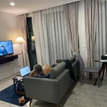Кондо прекрасен, чисто, уютно. Море недалеко, можно пешком дойти. На пляже масса кафе и массажных салонов. Что выделяет от других кондо - есть рабочий спортзал и даже завтраки. Минус был один - не работал бассейн.