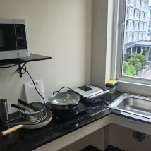 Выбрал этот отель по отзывам и не ошибся в данном отеле . приятно удивишься, очень красиво внутри есть лифт у меня номер на 5 этаже 503 номер, приехал на 37 дней и по этому взял с кухней, можно даже самое элементарное приготовить яичницу так как я мужчина и мне лень готовить , вся посуда есть и я с удовольствием готовил на этой кухне , в номере есть балкон с видом на горы , еще кто будет брать номер без кухни на цокольном этаже есть микроволновка можно подогреть. Отдельно отмечу хозяйку Marsha всегда встречает сама , я поздно приехал , очень отзывчивая , приветливая, вежливая , она делает уют в этом отеле и вы чувствуете себя как дома .