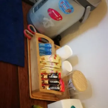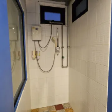 Небольшой номер не очень просторный. Есть 2 бутылки питьевой воды, но нет холодильника. Ванная комната не очень широкая. Предусмотрен водонагреватель.