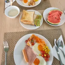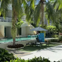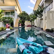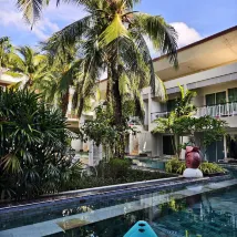 Отель находится далеко от пляжа, зато недалеко Big-C и 7/11 за углом. Встретили нас радушно, начав с фразы, что они повышают нам условия проживания со стандартного номера до номера с видом на бассейн. К нашему удивлению, в последствии мы выяснили, что в данном отеле отсутствуют номера без вида на бассейн, соответственно, никакого обещанного "улучшения проживания" по факту не было. Людей не много, достаточно тихое место, вкусно кормили и чистили бассейн ежедневно. Номер попался самый отдаленный, второй этаж из двух имеющихся, но свой спуск к бассейну имеется в каждом номере. Заселялись ночью, после весьма длительного перелета, уставшие, обратили внимание на треснутый стакан уже на следующее утро, по своей доверчивости, решили, что персонал в курсе и не стали сообщать и просить другой. Как уже позже выяснилось, очень зря. При выселении из номера, с нас требовали оплатить стоимость стакана, что странно, ведь до нас тоже кто то жил в этом номере и так же была его проверка по окончанию проживания. Возможно этот стакан, как переходящее знамя и способ допзаработка на невнимательных и уставших после долгого пути гостях.. 🤷