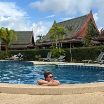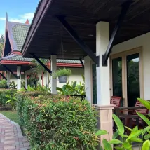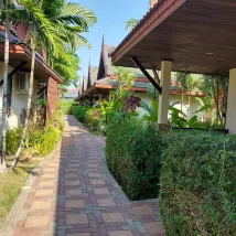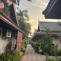 В целом отпль хороший , мы оставались между рейсами. Из аэропорта на такси 7 минут. Трансфер из отеля до аэропорта круглосуточный 150 Батт . Красивая территория, но много Комаров. Очень теплый бассейн. Номера внутри( домики) староваты, кондиционер давно не чистился и следовательно не очень холодит. Рядом есть 7/11 , что удобно.