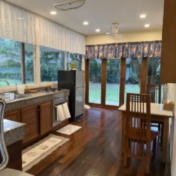 Вилла ухоженная и чистая каждый день. Любые возникающие вопросы решаются оперативно. Отличное расположение, рядом продуктовые магазины, в том числе русские. Маникюр, парикмахер, брови, массаж. Рядом с нашим любимым пляжем Най Харн. Персонал вежливый и очень позитивный.