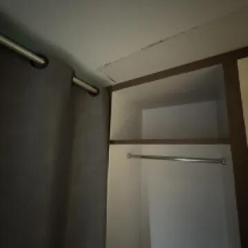 Между спальней и туалетом есть стекло. Когда дверь рядом закрыта, звук удара стекла о стену будет разноситься по комнате.