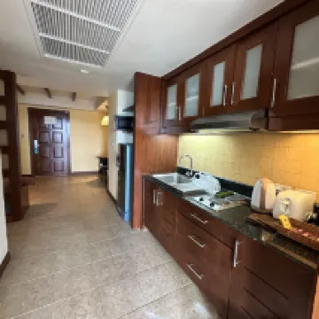 Хороший отель в спокойном районе на Панве. Сравнительно недалеко в районе 15-20 минут ходьбы находится шикарный чистый белоснежный пляж с песком ,где можно купаться не только взрослым ,но и детям. На территории есть небольшой бассейн работает он до 20 по местному. Завтраки с 7 до 10 выбор небольшой в основном яйца и тосты. Пляж есть ,но рекомендую ходить на Ао Йон. Там чище и спокойнее. Так что все кто хочет спокойно отдохнуть ,то рекомендую. На такси до города Пхукет 200 Батт. Аренда байка 250-400 Батт на сутки - с ним гораздо проще