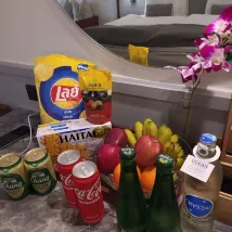 И ещё, на Пхукете только в этом отеле есть такой бонус: все, что в холодильнике и на столе бесплатно): 2 баночки колы, 2 баночки пива, оливки, чипсы, печенье, 2 бутылочки минеральной воды, 2 стеклянные бутылочки обычной воды, фруктовая корзина: бананы, яблоки, апельсины. Молодцы!!! Спасибо!!!