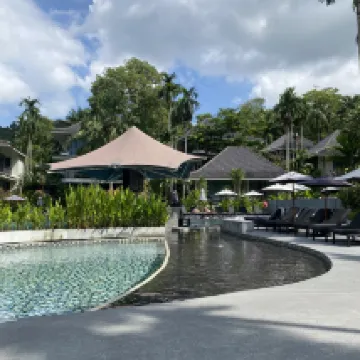 Неоднократно отдыхали в этом отеле, но этот опыт был негативным. Забронировали отель на 4 ночи по невозвратному тарифу. В течение отпуска обстоятельства изменились и мы были вынуждены уехать через 3 ночи. Отель категорически отказался осуществить возврат одной ночи (девушка на ресепшен была неприветлива). Ну это пустяки, хотя мы много путешествуем и всякое бывало, отели всегда шли на встречу, даже не 5 звезд. Дальше заселение в номер. Качество номеров изменилось: не стало приятного запаха (раньше ставили аромалампу керамическую), полотенца были очень уставшими и номер не чистым (волосы на полу). Много комаров, но отель не обеспечивает средствами от них. И самое неприятное в номере тараканы (обычные домашние, а не большие тайские). Полотенца меняли только большие, а для лица не посчитали нужным. Возможно такая ситуация связана с очень большим количеством людей в отеле. На завтраке было просто невозможно находиться, очень тесно, за омлетом очередь, столов не хватает и общая атмосфера на завтраке неприятная. В наш отдых чистили плитку в центральном бассейне хлором во время его работы! Люди купаются, работники щетками с хлором чистят плитку, все это попадает в бассейн и распространяется дико едкий запах! Почему этим не заняться в часы закрытия бассейна. Полотенца у бассейна тоже в очень грустном состоянии. За стоимость 12500 руб. (я за эту стоимость брала) ночь, такой сервис считаю крайне низким. Уехали с удовольствием, больше в этот отель не вернемся.