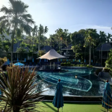 Неожиданно хорошо! Отличный завтрак, прекрасное обслуживание, а круглосуточный шаттл от лобби до номеров просто супер! Атмосфера как в тропическом лесу, повсюду зелень. И целых 5 бассейнов! 👍👍