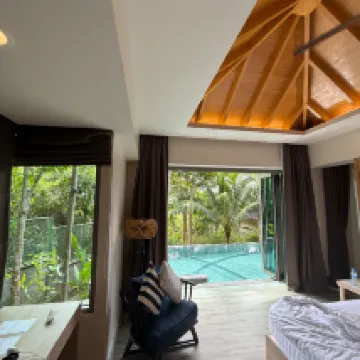 Шикарный отель, хорошее местоположение. Есть трансфер до пляжа. И от ресепшена до номера. Но в крайний день у дверь возле номера заметил змею на фонаре. Это было не приятно. На следующий день мимо центрального бассейна пробежала большая обезьяна.