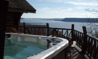 "Lion Downe" cottage, the perfect get-away with all the extras (new large hot tub, free WIFI, satellite, firewood, etc.) , located in the heart of the Rush River Valley, along the scenic Mississippi corridor with brand new large hot tub and expanded deck with unparalleled views of Lake Pepin and the surrounding majestic bluffs.