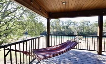The space Southern Grace is located in a gated river community just over 1 mile from Highway 70. Upon arrival, feel free to park under the stilted house or in the gravel out front. There's plenty of room for multiple vehicles. You will immediately notice the hammocks and picnic table in the shade, the firepit out back and of course the Caddo River just steps away!