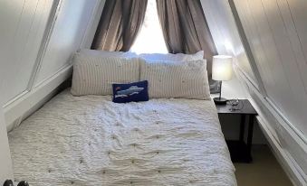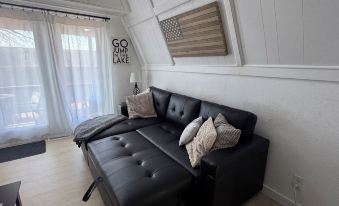 Completely renovated A-frame cottage has the feel of lake life but with modern flair. Each room has it's own cozy charm. A queen size bed on the main floor with your own tv for late night enjoyment. The upstairs has another bedroom with a full-size bed and a separate loft for the kids (or adults), perfect for reading, board games, or just relaxing. A spacious living room with open an open ceiling to the loft, large tv, and leather couch that folds out into an additional full-size bed. A nice kitchen including a large fridge, stove and oven, microwave, and breakfast nook complete with a coffee maker! Recently added - free laundry room for guest's use!