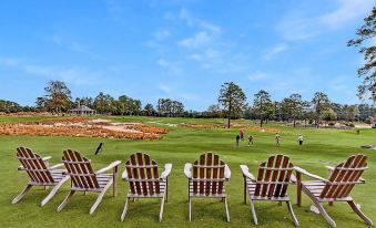 Grab the clubs and escape to a golfer’s paradise at this brand-new 4-bedroom home near beautiful Pinehurst. Perfect for golfing groups or families, the home boasts modern furnishings, a tranquil patio with BBQ, and an upstairs den with a poker table, 65” TVs, and leather sectionals. Ace those 18 holes, then recharge at The 19th Hole.