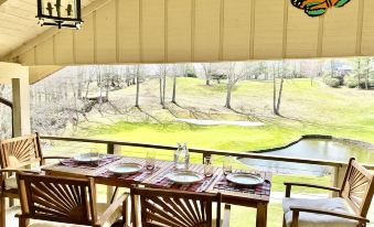 two couples stayed here for a golf vacation. We have friends who own a place not too far away. We loved this property. It had two separate living areas which made it ideal for us. The porch overlooks the first tee of Linville Land Harbor Golf course. It was fun to sit out there and watch people play through. There is a nice firepit also overlooking the green that we didn't get to use because of the wind. The house was very well equipped and we didn't lack for anything. We did not have any maintenance issues at all. We would definitely stay here again