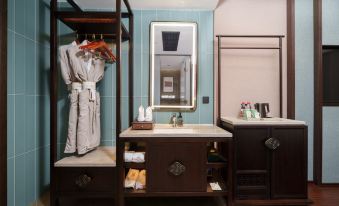 Our store is quietly parked in the green brick and tile room of the world cultural heritage Pingyao Ancient City, adjacent to the thousand-year-old city wall, and only 5 minutes walk from Pingyao Ancient City. I can still hear the camel bell of the rising sun and the world. With the idea that "the return of the heart is my hometown", we quietly weave the elegance of the Forbidden City court and the cultural soul of Jin merchants into the living space to create a cultural habitat. Pushing the door reveals the overlapping realm of time and space: the white wall of jade fat is smeared with cloisonné flowing color, and the lacquerware pattern of pushing light whispers the past between light and shadow; The tea fragrance is full of Song style elegance, and the guest rooms are pillowed with the breath of Jin merchants' style, so that the historical temperature is naturally moist in comfort. Inheriting the oriental hospitality, we wait for the journey with warmth: warm porridge at midnight to smooth out the dust, washing the washing room to wash away fatigue, and customized guided tours of the ancient city to listen to the historical echoes between the masonry and stones. When the morning light floods the carved window lattices, Tingbo is your return boat anchored between the long river of history and the fireworks of the city - here, the city wall is the pillow, the Jin merchants are the soul, and every stop becomes the return of the soul.