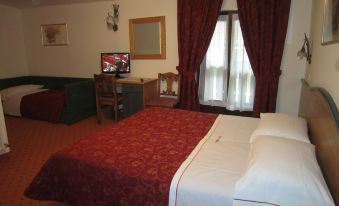 This was one of our best vacation ever! Hotel Alpina is a small, family run hotel in the very center of Pinzolo, right in front of the town's main square. Even though the hotel faces the main street, it's very quiet and comfortable. We stayed in a triple room (#304), which, though relatively small, had everything we needed with plenty of closet space and very comfy beds. The bathroom was not fancy, but everything worked perfectly. The hotel has also a nice common area on the first floor which was great to do family games and to But the highlight of our stay was the staff, professional and extremely friendly at the same time. I highly recommend booking a "mezza pensione" because the restaurant and breakfast are really, really good. If we go back to Pinzolo, we will definitely stay again at Hotel Alpina!