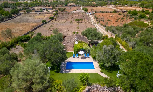 Beautiful, cosy villa "Sa Teulada", renovated. Outside the resort, 4 km from the centre of Santa Margalida, in a quiet, sunny position, 11 km from the sea, in the countryside. Private: natural state property, beautiful garden, swimming pool angular (8 x 4 m, depth 100 - 170 cm, seasonal availability: 01.Jan. - 31.Dec.). Outdoor shower, patio, arbour, pergola, garden furniture, barbecue, pool maintenance by the owner/gardener. In the house: air conditioning. Supermarket 3.7 km, restaurant 3.5 km, 55 minute walk to the centre, bus stop "Santa Margarita" 4 km, ferry "Port Alcúdia" 21.2 km, sandy beach "Son Bauló" 10 km. Sports harbour 10 km, golf course (18 hole) 24 km, riding stable 9.5 km, walking paths from the house, cycle lane 500 m. Nearby attractions: Can Picafort-Son Serra-Santa Margarita, Palma de Mallorca 53 km, Hidropark Aquatic Park 20 km, Mallorca Fashion Outlet % Cinemas 45 km. Hiking paths: Finca Pública Son Real, Parc Natural de Farrutx, S'Albufera de Mallorca. Please note: car recommended. Object suitable for 4 adults. The owner does not accept any youth groups. 47 km from the property. Airfield. "Sa Teulada", 3-room villa 65 m2, lower ground floor. Object suitable for 4 adults. Practical and comfortable furnishings: open living/dining room with open-hearth fireplace (only for decoration), dining table, digital TV, flat screen, air conditioning and forced-air heating. Exit to the patio. 2 large double bedrooms, each room with 2 beds (90 cm, length 200 cm), digital TV, flat screen, air conditioning and forced-air heating. Open kitchen (oven, 3 ceramic glass hob hotplates, toaster, kettle, microwave, freezer, electric coffee machine). Shower/WC. Electric heating. Large patio, porch. Terrace furniture, barbecue, deck chairs, covered balcony. View of the garden and the countryside. Facilities: washing machine, iron, children's high chair, baby cot for up to 2 year olds, hair dryer. Internet (WiFi, free). Parking (fenced) at the house. Please note: non-smoking house. The pool mentioned in the description is for private use. ETV/11875 ESFCTU00000701100099576300000000000000000000ETV/11875