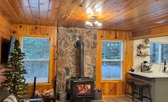A cozy cabin that feels like home away from home. It is centrally located minutes from ski resorts, hiking trails, lakes and lots more. Relax in the spa, warm up by a crackling fire wood burning stove, and enjoy a cafe style latte on a Breville espresso machine. Bring your family and friends for a weekend full of memories.About pets:No pets allowed.About checkOut:Check out before 11:00 AM.About children:Children allowed: ages 0-17.About customRules:Security cameras on premises. Park on top of driveway when there is snow. Additional charges will apply if any signs of smoking in or on premises..Please keep recycling in separate bag from garbage. Thank you.About checkIn:Check in after 4:00 PM.About smoking:Smoking is not permitted.About events:No events allowed.