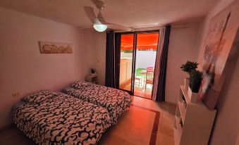 The apartment Casa Teide is located in the very well-maintained complex Parque Santiago 1, directly by the sea and the beautiful beach of Las Americas. The pool is heated in winter and is only a few steps from the flat. All shops, restaurants, hairdressers, banks and cash machines are within walking distance. Also within the complex there is a supermarket and some shops, car rental, restaurants. The property has two bedrooms, both bedrooms have a double bed, additionally there is an extra bed for a fifth person which we can provide in the living area.
