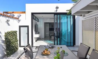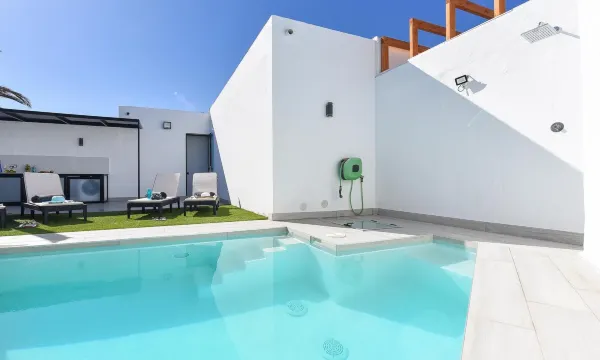 Modern, cosy villa "Villa Daniela". In the centre of Playa del Inglés, in a central, busy position. Private: property (fenced), swimming pool (3 x 2 m, depth 120 - 120 cm, seasonal availability: 01.Jan. - 31.Dec.). Outdoor shower. In the house: air conditioning. Public parking on the road. Shop, supermarket 200 m, bus stop "Shopping Center Cita" 50 m. The owner does not accept any youth groups. Please note: airfield 35 km from the property. Neighbourhood highly sensitive to noise. Quietness and good behaviour expected. "Villa Daniela", 4-room house 80 m2. Comfortable and modern furnishings: living room with 1 double sofabed, digital TV and air conditioning. Exit to the patio. 1 room with 1 french bed, shower, digital TV and air conditioning. 1 room with 1 french bed, digital TV and air conditioning. Open kitchen (oven, 3 ceramic glass hob hotplates, toaster, kettle, microwave, freezer, electric coffee machine). Shower/WC. Patio. Terrace furniture, deck chairs. Facilities: washing machine, safe, iron, children's high chair, baby cot for up to 2 year olds, hair dryer. Internet (WiFi, free). Please note: non-smoking house. Maximum 1 pet/ dog allowed. 2022-T13664