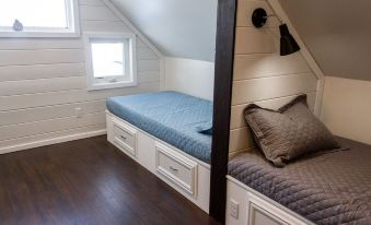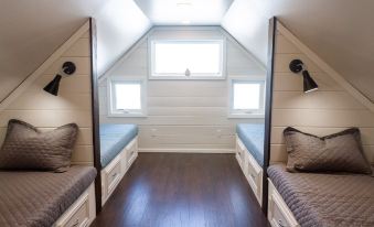 Two of the bedrooms have queen-sized beds, each of which is large enough to accommodate two adults. In the third bedroom, there are four extra-large twin-sized beds, each of which is big enough for adults. Additionally, the sunroom has a queen-size Murphy bed, which allows you to host up to 10 people, preferably a mixture of kids and adults.