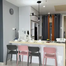 The unit has beautiful and sophisticated decor and is cosy and comfortable with quite complete amenities. The view outside the floor to ceiling windows in the living room and main bedroom is fantastic.