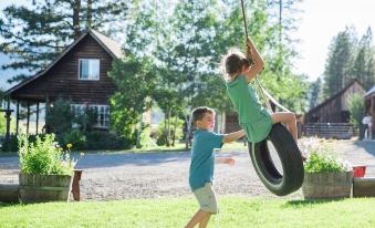 We stayed in a cosy but well equipped cabin with a superbly comfortable bed. The surroundings and views include a lush pasture, green conifers and craggy mountains. There's a stream with swimming and boating nearby. The family and all those who work on the ranch are friendly and helpful. I can't wait to return.