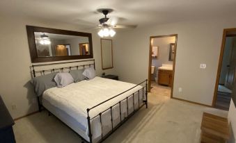 Really great home! The large open concept kitchen/living area is great for everyone to feel relaxed.The bedrooms are very nice with two on each side of the living area and a bathroom in between each bedroom. A third bathroom was a real plus for a full house. The outdoor area is very large, with room for hammocks, badminton and other outside activity.The large deck allows a large group to spread out comfortably.The kitchen is well stocked with necessary items. We were there with temperatures in the mid-80's and the house was perfectly cool with screen doors and ceiling fans. The many trees in the back provide shade for backyard activity. The appliances are all very nice and functioned perfectly. Furniture was all very comfortable and spacious. Large dining table and stools at the counter were great.Outdoor seating was plentiful and allowed a large gathering plenty of space to spread out if needed. Parking was nice with the double drive-through driveway.We appreciate the "no pet" policy A real plus was the neighborhood. This is a fantastic community with homes on large lots. The house is located on a very quiet street. Access to the river is just a few minutes walk or you can drive to a small parking area.The Graeagle area is full of places to explore. This house delivers the beauty of the outdoors right in front of you.We stayed five nights and enjoyed every minute.