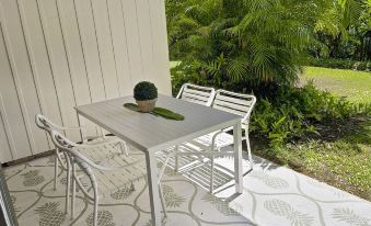 Inside the condo you will find all the comforts of home and more. Large couches for lounging, comfortable outdoor furniture for an evening dinner with a garden view on the lanai, and a brand new king size bed to rest you for the next day of fun.