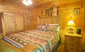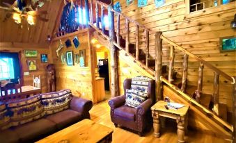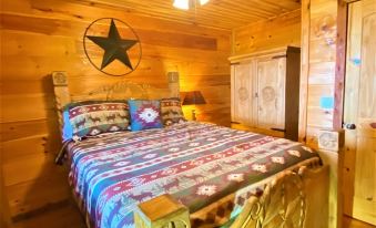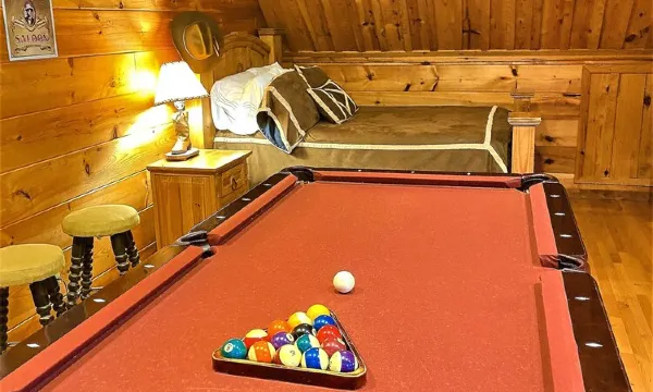 Luckily for Mena Mountaintop Cabins, the West was never won. It remains wild as a jackalope in June. Nestled on our mountaintop, with views overlooking the glorious untamed Ouachita range, the Wild West cabin is perfect for your buckaroos to convene after a long day on the trail. With two Queen Bed sleeping quarters downstairs, lofted upstairs gamblers will find the barroom billiards table, and sleeping quarters for three. Downstairs is a fully stocked galley kitchen for cooks to rustle up cornbread and beans, accompanied by a large dining table which doubles as the perfect place for those who know how to hold 'em and fold 'em. The entire posse can gather on the back porch and soak in the view, yodel, and plan the next stagecoach heist. Sleeps 9. Two full bathrooms, fully stocked kitchen with dishwasher four burner stove, oven, microwave, full sized refrigerator, sofa bed downstairs, washer and dryer, Central Heat and Air, gas fireplace during fall months, satellite TV, charcoal grill. Back porch with Mountaintop view, Ride in access to Wolf Pen Gap trail head, shared Mountaintop Vista picnic area and fire pit, Free Wi-Fi, Cell Service, 5 Miles from Downtown Mena. (Mena Mountaintop Cabins.. Our Cabins are Tops!)About pets:No pets allowed.About checkOut:Check out before 11:00 AM.About children:Children allowed: ages 0-17.About checkIn:Check in after 3:00 PM.About smoking:Smoking is not permitted.About minBookingAge:Minimum age to rent: 21.About events:No events allowed.
