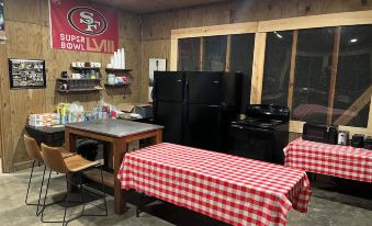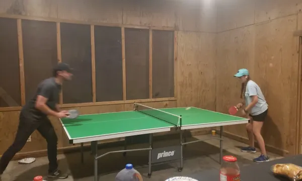 We provide cornhole boards and bags, dart board, ping pong table, volleyball court, basketball goal, and other board games for guests. Our common area is available for all guests and includes a large dining area with tables and chairs. Other amenities include a large kitchen/cooking area with refrigerators, freezers, microwaves, ovens, and coffee makers. Vending and ice machines are also available with washer, dryer and dishwasher with dishwashing sink.