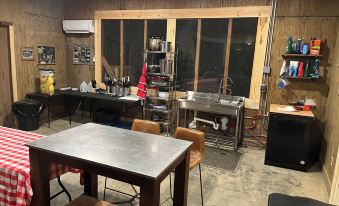We provide cornhole boards and bags, dart board, ping pong table, volleyball court, basketball goal, and other board games for guests. Our common area is available for all guests and includes a large dining area with tables and chairs. Other amenities include a large kitchen/cooking area with refrigerators, freezers, microwaves, ovens, and coffee makers. Vending and ice machines are also available with washer, dryer and dishwasher with dishwashing sink.