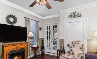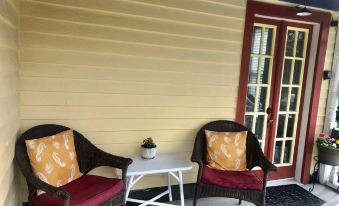 The Queen Suite has it's own entrance/exit off of the Manor. Enter into your Living room w/sofa/smart TV/pub table/mini fridge/freezer/microwave/Keurig coffee pot. Everything you need for a relaxing weekend. If you plan to eat a lot then a week. Through your Living room, into a short hallway to your right is a spacious beautiful full bathroom, with Jack and Jill doors, one to the hall and the other directly to your bedroom. The Queen bedroom again, connects to your private bathroom, and is airy and opened yet comfy all at the same time. All 3 rooms and balcony/entrance are designated to you and you alone. Relax and Enjoy your stay. Need more room? Rather have a full Kitchen? Check out or private cottage also listed on VRBO. Some outside common areas could be shared with owners and guest of the cottage. Both rentals are in the center of town with firehouse, trains and the main street, we could have higher than normal noise levels. There are outdoor security cameras in the property.About pets:No pets allowed, service animals permitted.About checkOut:Check out before 11:00 AM.About children:Children allowed: ages 0-17.About customRules:No smoking Vaping /Cannabis use inside the Suite; it is allowed on your porch and use the planter w/sand to dispose. Empty unit of all food/trash.About checkIn:Check in after 3:00 PM.About smoking:Smoking is not permitted.About minBookingAge:Minimum age to rent: 22.About events:No events allowed.