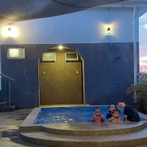 Номер чистый, и внизу много ресторанов на выбор. Поблизости много мест, где можно поесть, а также есть супермаркет 99, что очень удобно. Мы были с детьми, и им очень понравился бассейн на крыше.