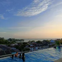 Лучше всего то, что из бассейна открывается прекрасный вид на закат, но он также чистый... завтрак нормальный.