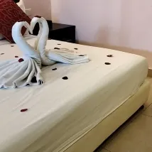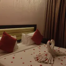 В номере отвратительный запах, ковёр. Повсюду паутина и клопы. Простыни пыльные. Полотенца похожи на тряпки. Я попросил дополнительное полотенце, но сотрудник отеля попросил меня забрать его на стойке, сказав, что не может мне его доставить. Я забронировал VIP-номер, но он обшарпанный и дорогой. Вода в бассейне грязная. На завтрак мало блюд: жареная лапша, ми сиам, самоса с сосисками, хлеб и арбуз.