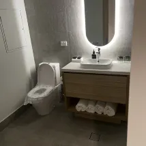 Super new comfortable & clean rooms, excellent location by waterfront. Lobby was bright making everyone refreshed. Staffs are great. Swimming pool is small and nice to have jacuzzi looking out to the ocean. Will be great to have self service laundry. Food was great at Zebu. Love it. Will definitely recommend to any family