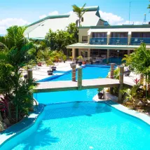 We went to the hotel to check in but the room type we selected was fully booked, the receptionist was very nice, she upgraded our room for free to their apartment suite. The apartment had three rooms, WiFi, a large living room and kitchen, it was very comfortable. Appreciate the friendly staff and great amenities. There is also several restaurants there, bars by the poolside and very close to the airport, museum, Parliament House and golf club.