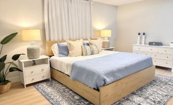 This beautifully designed 3-bedroom, 2-bathroom coastal retreat is the ultimate escape, where beachy charm meets modern comfort. From the stylish coastal-inspired light fixtures and lamps to the cozy decor and soft rugs, every detail will make you feel like you're right on the shore.