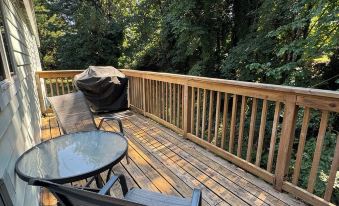 A single-story house with a step-free entrance. An expansive front yard with a patio. A deck with BBQ in the back overlooking a lush private canyon. The house has everything needed for a comfortable stay, including high-speed internet, an office, and HD Smart TV. Deer, rabbits, and squirrels are frequent visitors that add enjoyment to the natural setting.