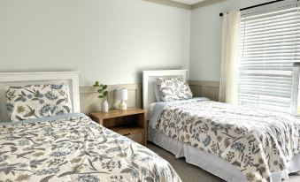2 bedrooms: 1 with queen bed and 1 with two twin beds + pull out queen sleeper sofa in family room.