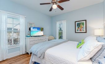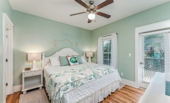 • Step inside to the coastal inspired open floor plan. The entire 1st floor has been redone following Hurricane Michael. The theme is beachy charm, clean and comfortable! The living area includes a 50” Smart flat screen TV. Free cable and WIFI are provided.