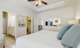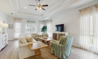 Pack up the whole family and make your way to the white sand and blue water here in Port St. Joe! With all of the comforts of home and beach access mere steps from this getaway, no one will want to leave. Wake up and breathe in the ocean air each morning with a cup of coffee in hand as the kids collect seashells on the shore. When days heat up, head over to the shared pool area and soak up some vitamin D. Escape the heat with a dip in the refreshing water and head over to the playground to let the little ones get their wiggles out. Curb appetites back at home base in the fully equipped kitchen and reminisce about the day at the dining table or breakfast bar as the chef of the group works their magic. Nights will be just as fun, as a movie night is never a bad idea with a flatscreen TV in the living room and free WiFi to stream your favorite shows!