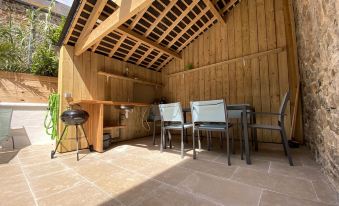 A lovely property right by the water - bars, restaurants and shops all within 100m. Host had tried really hard to make sure everything was in order. We needed for nothing in terms of the house - small touches, hand soap, dishwasher tablets, clothes washing powder, toilet rolls and even a welcoming gift of cider and biscuits all provided. lovely restaurants nearby. We had a great time with our canoe at high tide. Rear patio with BBQ and separate access was great to store our bikes. Good value for money.